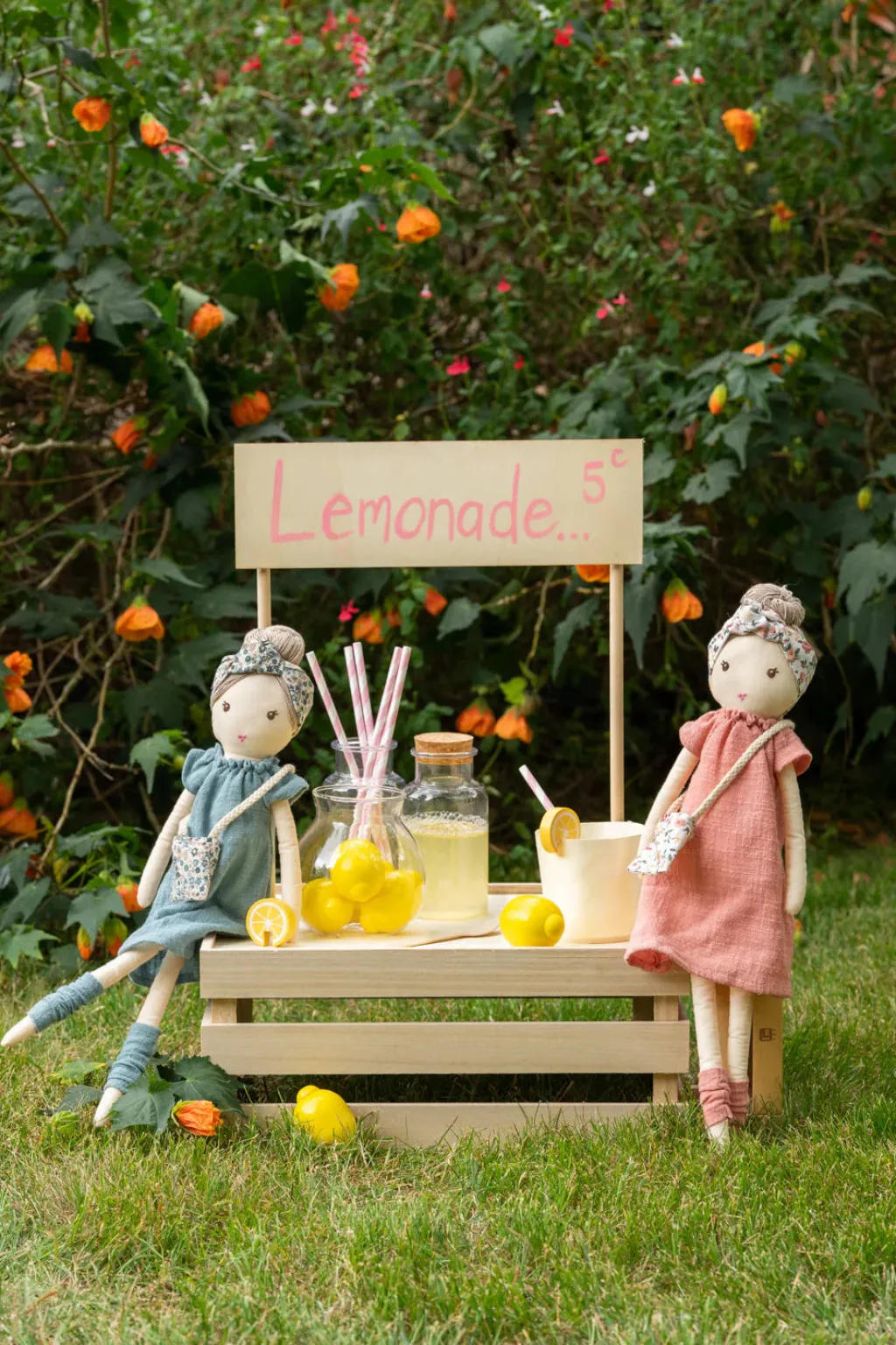 Pink Miss Clementine just adores slipping into her favourite frock & floral headband & going for picnics with her sister, blue Miss Clementine. They love to coordinate their outfits, pick wild blackberries, feed carrots to all the local horses & do cartwheels in the grassy paddocks. These two giggling girls grew up on a farm near Apollo Bay & they have always loved the great outdoors. On weekends, they make lemonade & raspberry-rhubarb jam & set up a stall outside their house. It’s very popular with the locals!
