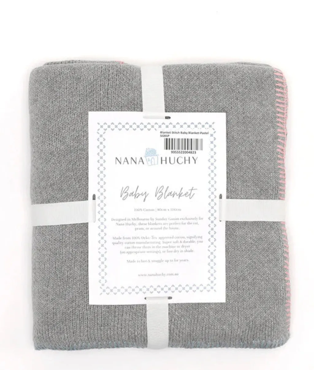 Our 100% Oeko-Tex-certified cotton baby blankets feature soothing, understated designs in candy pastels and neutral greys that are perfect for the cot, the pram, or around the house. Lightweight, durable & machine-washable, these gorgeously soft blankets were designed in Melbourne by Sunday Ganim exclusively for Nana Huchy.