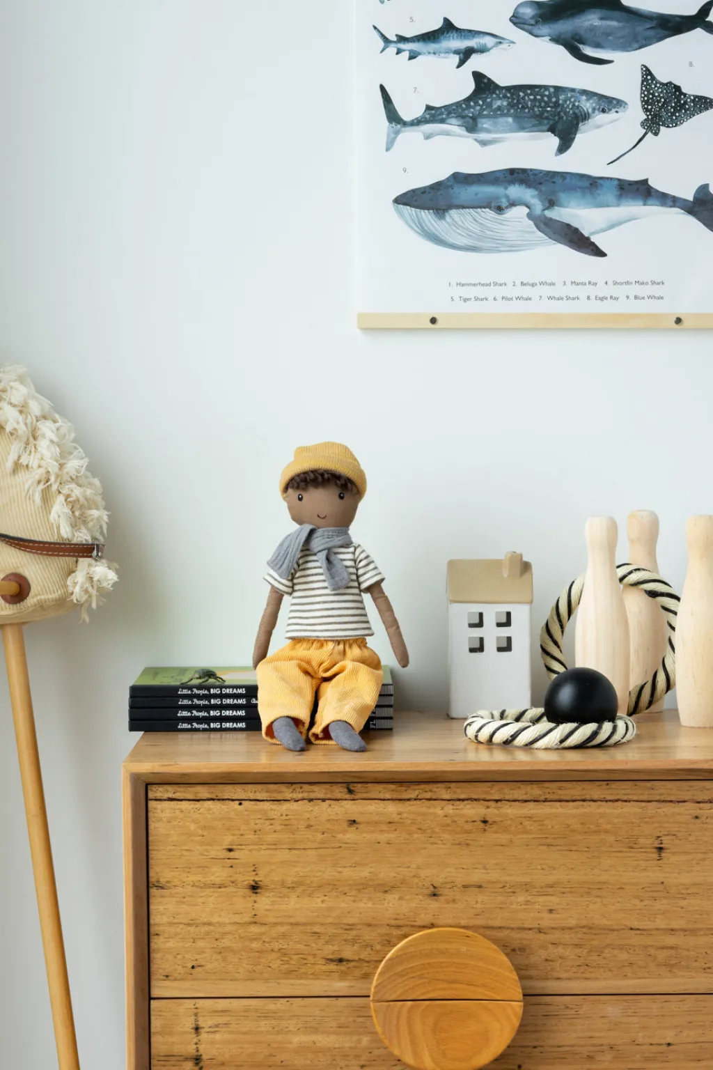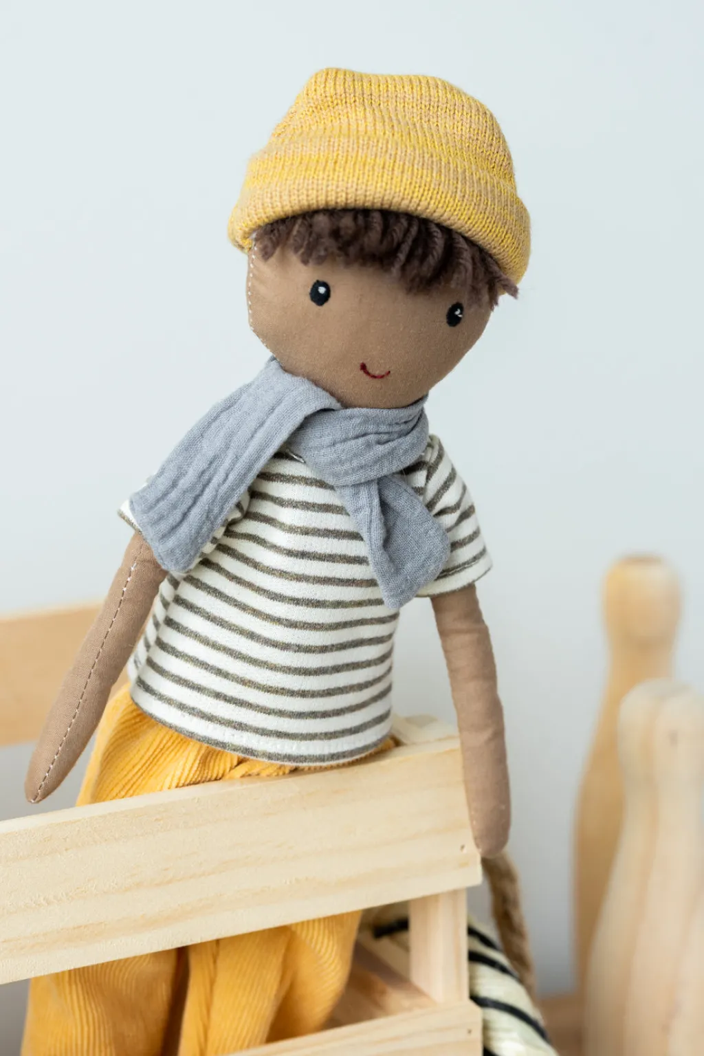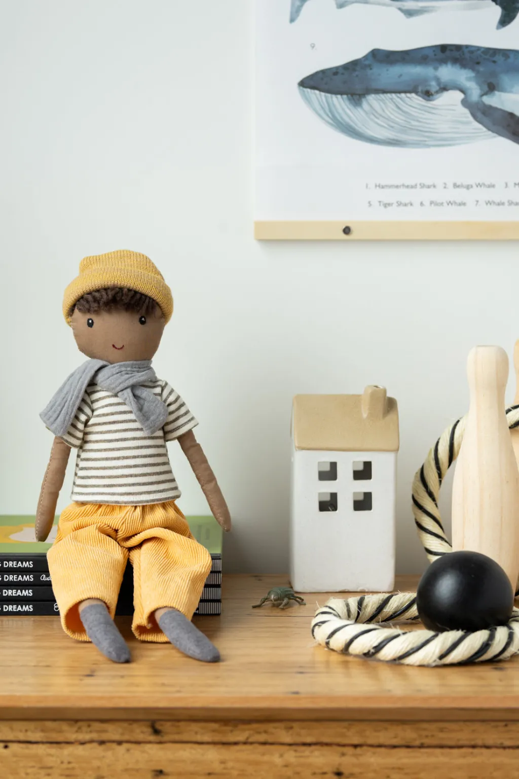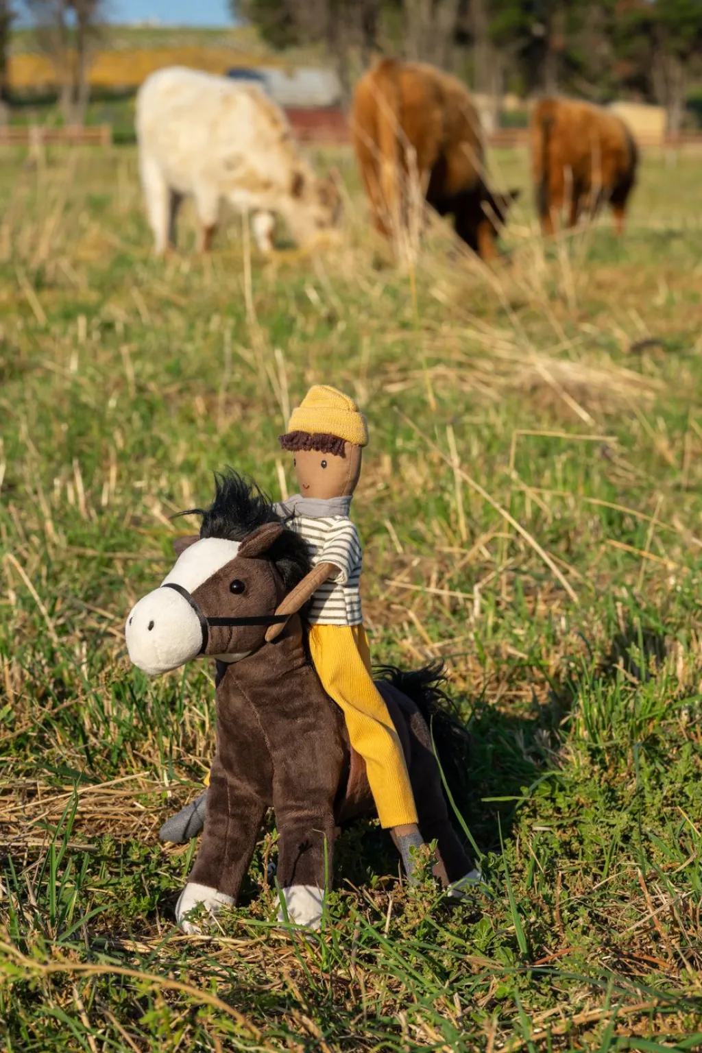 The only vegan dairy farmer you’ll ever meet, Master Albert is a dreamer who secretly wishes he was working at Vegie Bar or Smith + Daughters in Melbourne’s inner north – then he would at least get some lunch he could eat. Thankfully, in a year or two, he will finally be old enough to move away from his family’s Shepparton farm & join his older brother Jack in his cool Fitzroy loft. Maybe Albert will even learn an instrument, join a band! He could be a famous bassist like Paul McCartney, Cliff Burton or Flea! Cuddly & unique, this handsome lad in his striped tee likes reading science fiction novels, playing chess with Master Jack (who annoyingly always beats him) & finding shapes in the clouds.