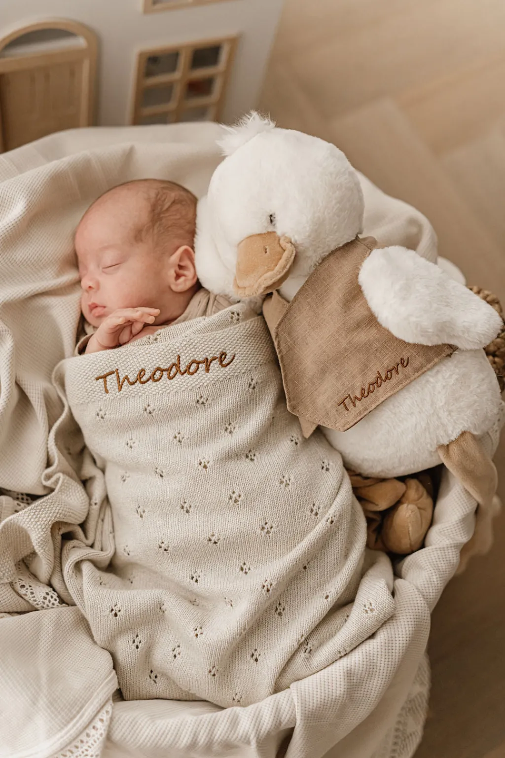 Please note: for free personalisation, allow 2 business days from ordering to dispatch. When ordering a Personalised Blanket Bundle, we will embroider the same name on both products.