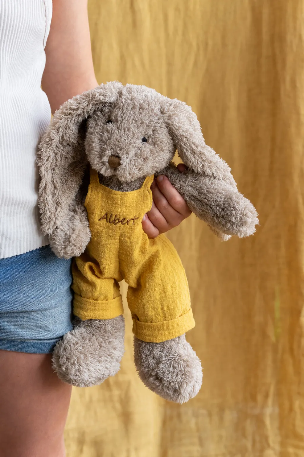 Durable & beautifully soft, these cute-as-a-button overalls have been designed with love for your Nana Huchy Honey Bear or Honey Bunny & include complimentary embroidery.