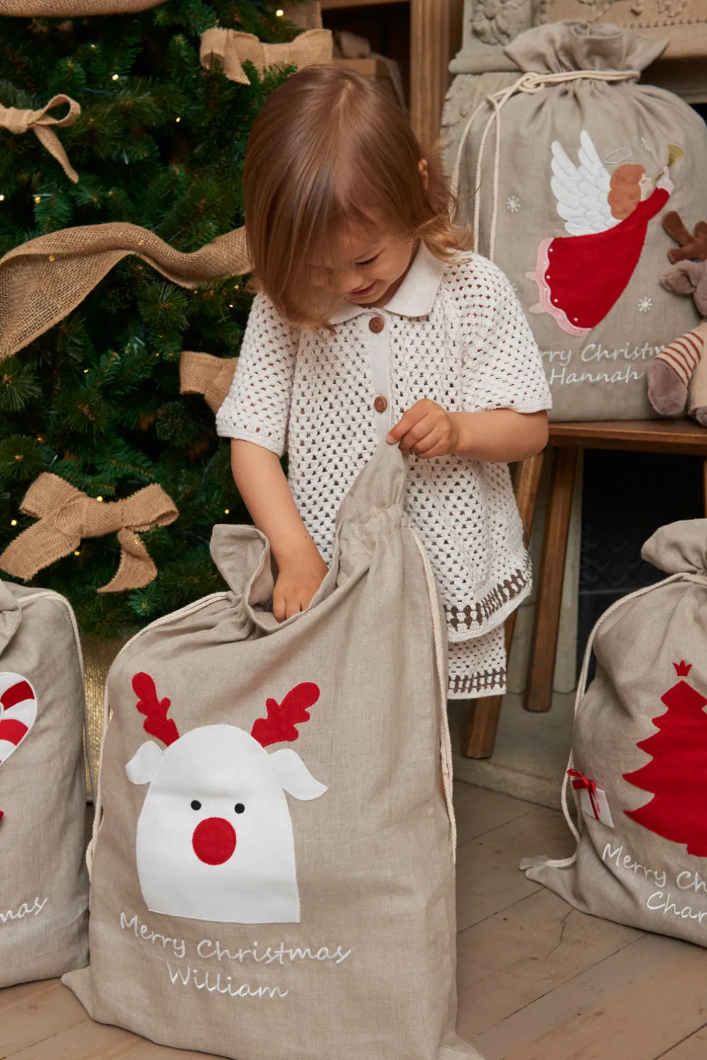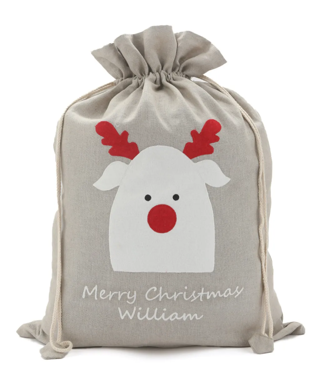 Generous in size & made with love from 100% ecru linen, our Personalised Santa Sacks are begging to be filled with gifts & goodies. Our classic Christmas sacks look stunning beneath the tree or at the foot of a child’s bed, becoming an instant family heirloom to pass down through generations.