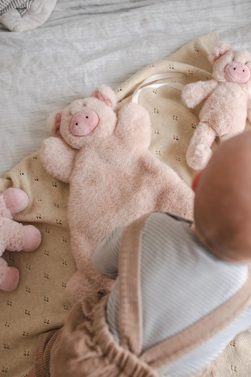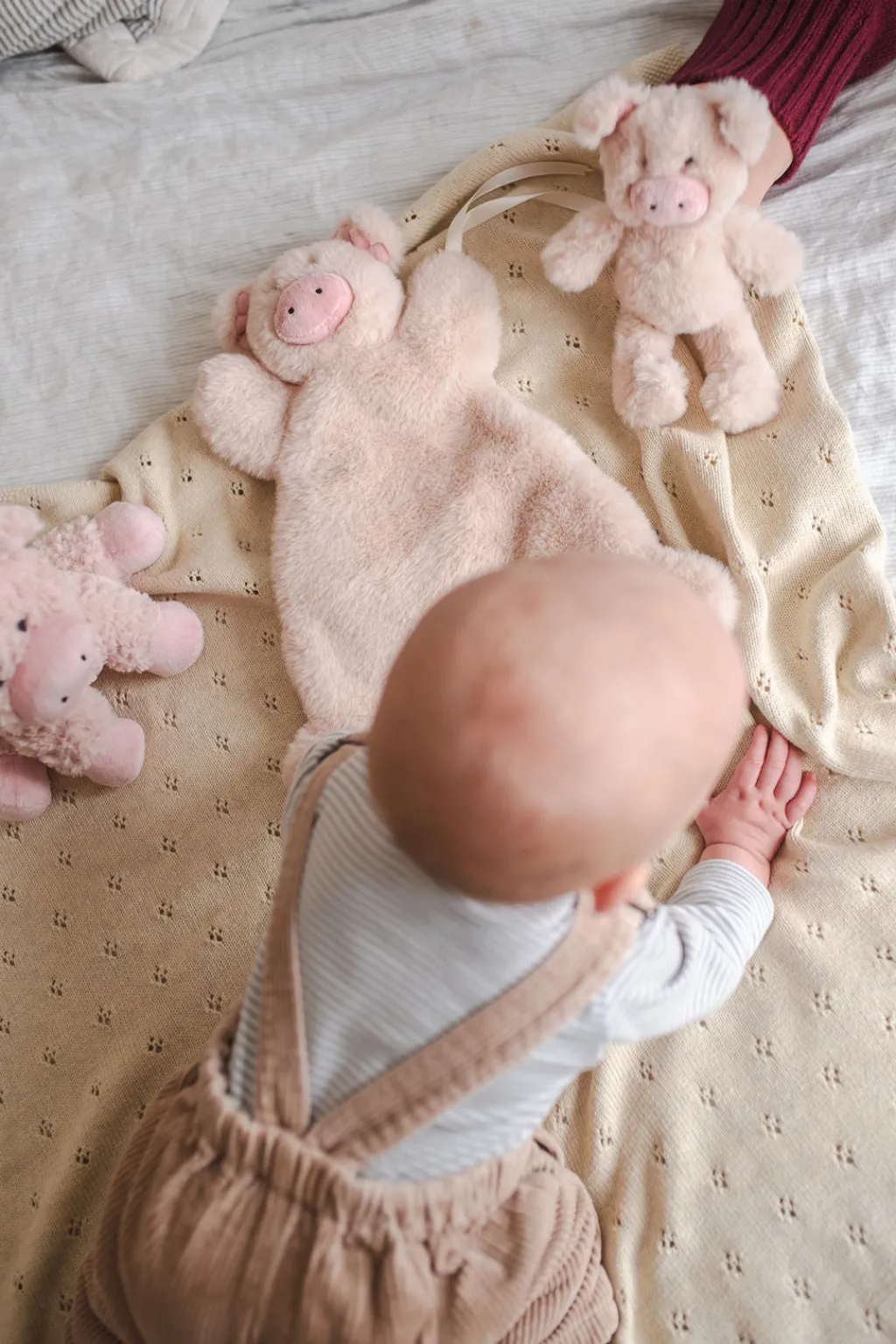 Our revolutionary & oh-so-snuggly baby sleep aid, the Hoochy Coochie puppet comforter! An all-in-one comforter, hand puppet & story time aid, the Hoochy Coochie also includes a secure dummy attachment so your child will always have a soother close to hand. With a nifty hand-sized pocket, the Hoochy Coochie can be used as a puppet before bedtime, a convenient way to captivate babies & toddlers & help them relax. They can then quietly cuddle up to their Hoochy Coochie as they drift off to sleep. Hoochy Coochies are designed to be favourites, those extra special toys that young children form an attachment to, keeping them close wherever they go, & using them as self-soothing aids.