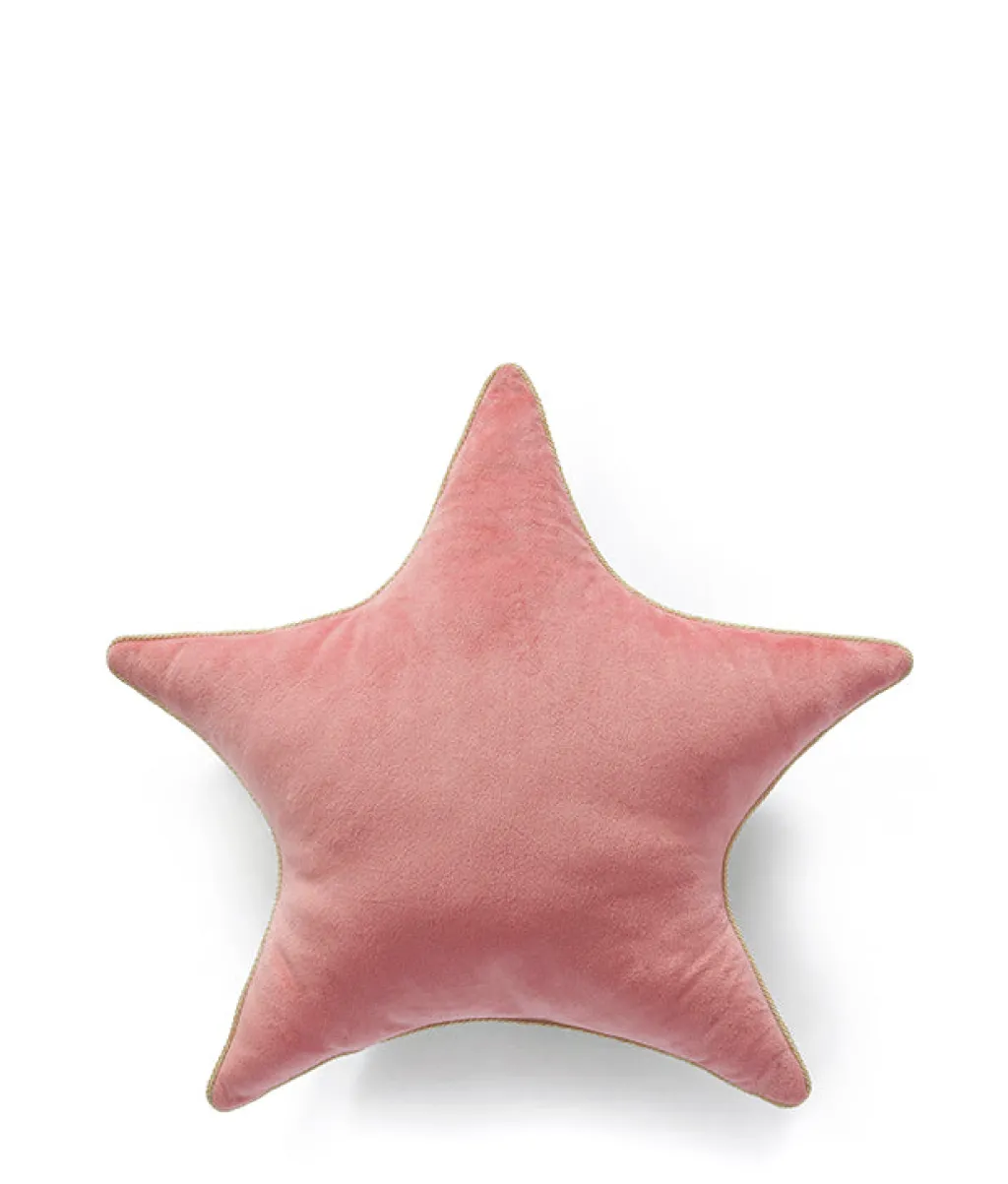 When you are greeted by this beautifully soft star as you climb into bed, your wishes really will come true. Our small raspberry pink/earthy turquoise Wish Upon A Star Cushion is conveniently reversible, brightening up any bedroom or nursery. Fringed with gold metallic piping, this gorgeous velour cushion can be styled with any of our other cushions, soft toys, Hoochie Coochie comforters & cloth dolls.